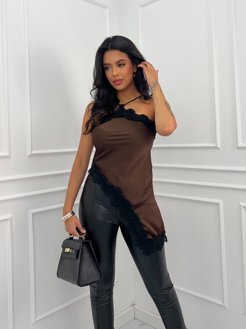 Odkryj niezrównane połączenie komfortu i klasy z naszym topem satynowym z koronką. Ta wyjątkowa bluzka na ramiączka to must-have w Twojej garderobie, który sprawdzi się w każdej sytuacji.