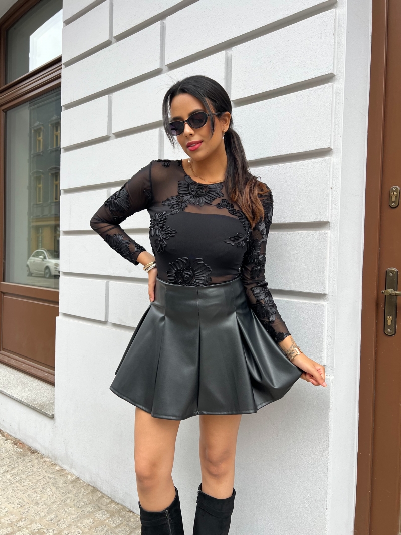 Nie czekaj dłużej! Dodaj odrobinę stylu do swojej szafy z body z siatki z kwiatową aplikacją Rossi.