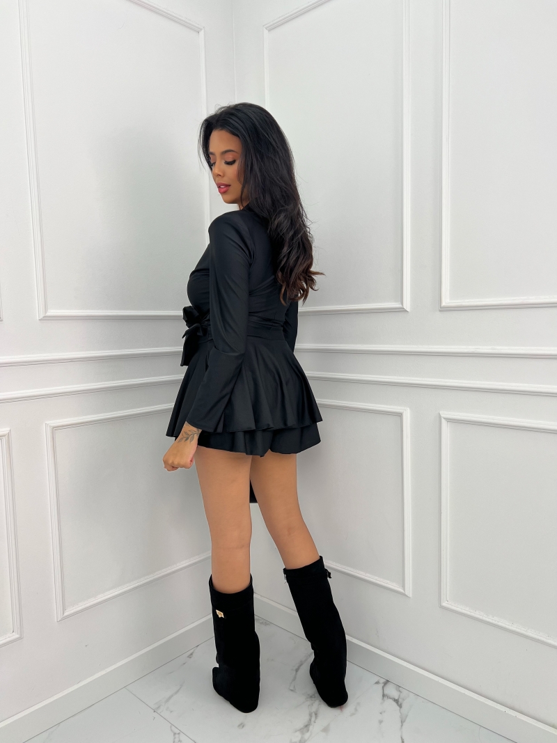 Szukasz idealnego stroju, który połączy elegancję i wygodę? Elastyczny kombinezon mini z falbanką i to doskonały wybór! Ten wyjątkowy kombinezon, wykonany z wysokiej jakości materiałów, podkreśla sylwetkę, dodając Ci pewności siebie na każdą okazję. Jego elegancki krój i długie rękawy sprawiają, że jest idealnym rozwiązaniem zarówno na wieczorne wyjścia, jak i codzienne stylizacje.