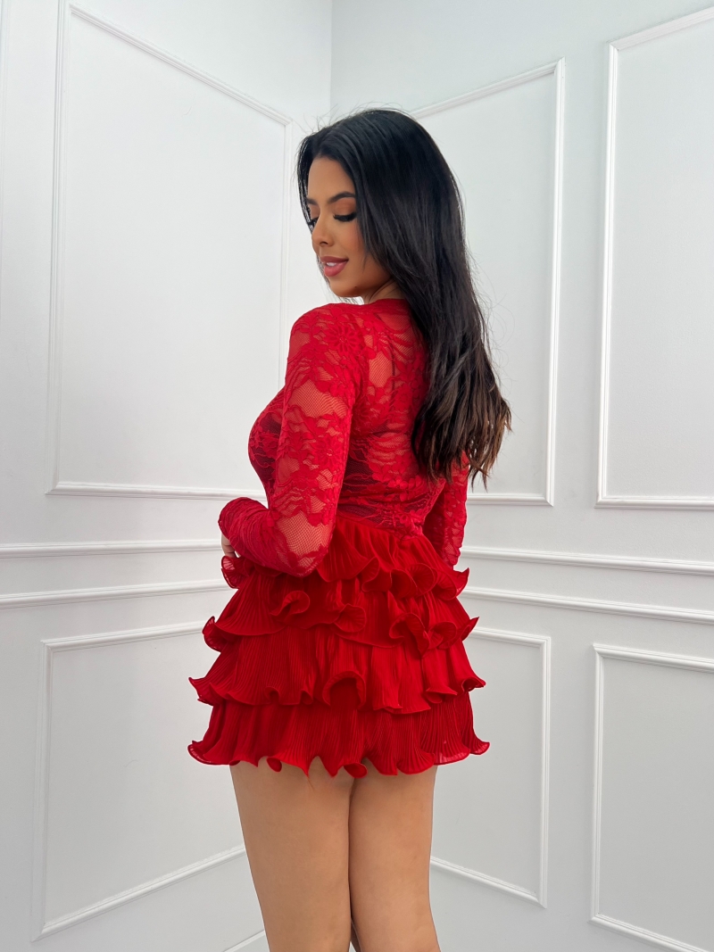 Kombinezon koronkowy mini z falbanami Dulce – Urok jesiennej elegancji!