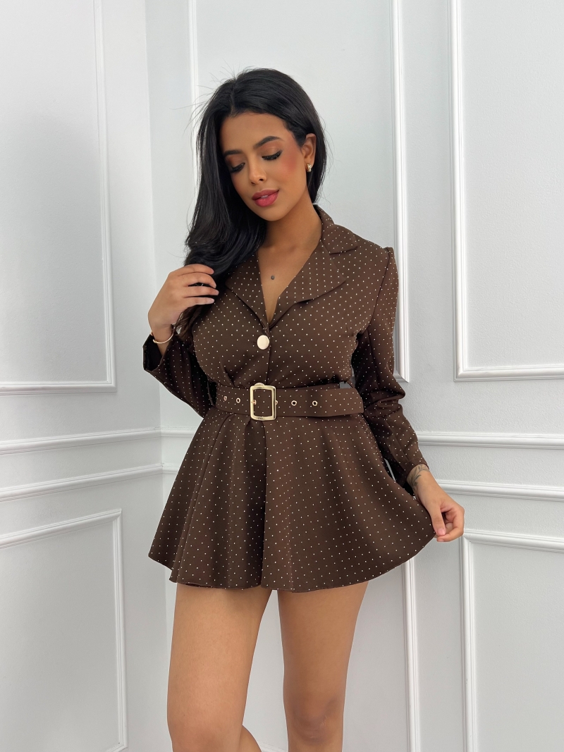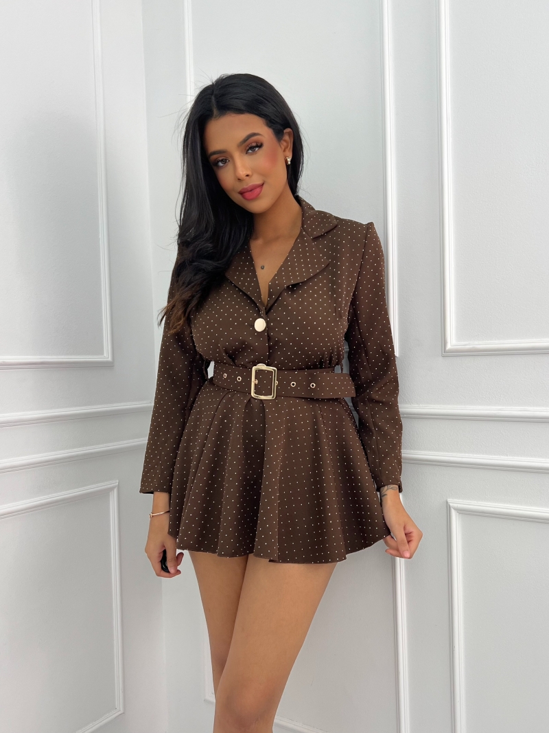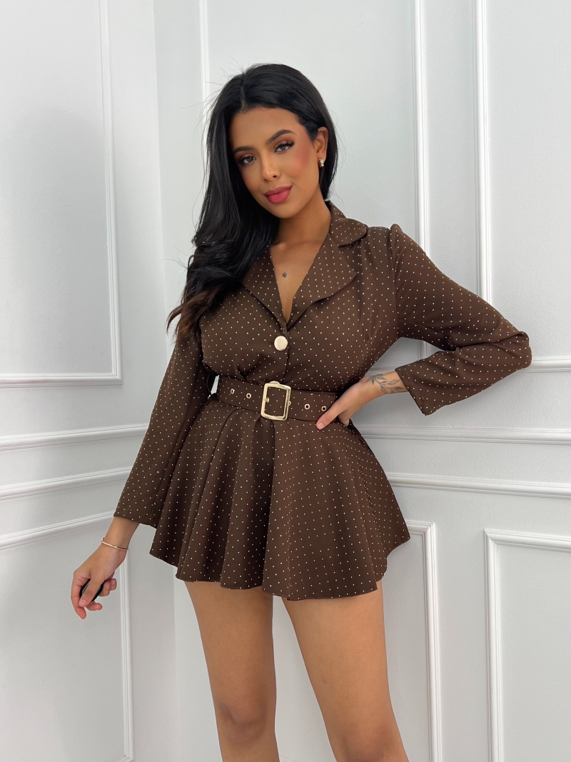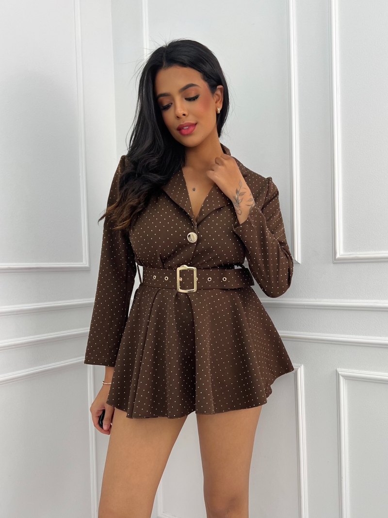 Odkryj magię stylu i wygody dzięki naszemu kombinezonowi mini rozkloszowanemu z paskiem Marianna! To idealne rozwiązanie dla kobiet, które pragną połączyć elegancję z codzienną swobodą. Ten wyjątkowy kombinezon to must-have, który odmieni Twoje stylizacje na każdą okazję.