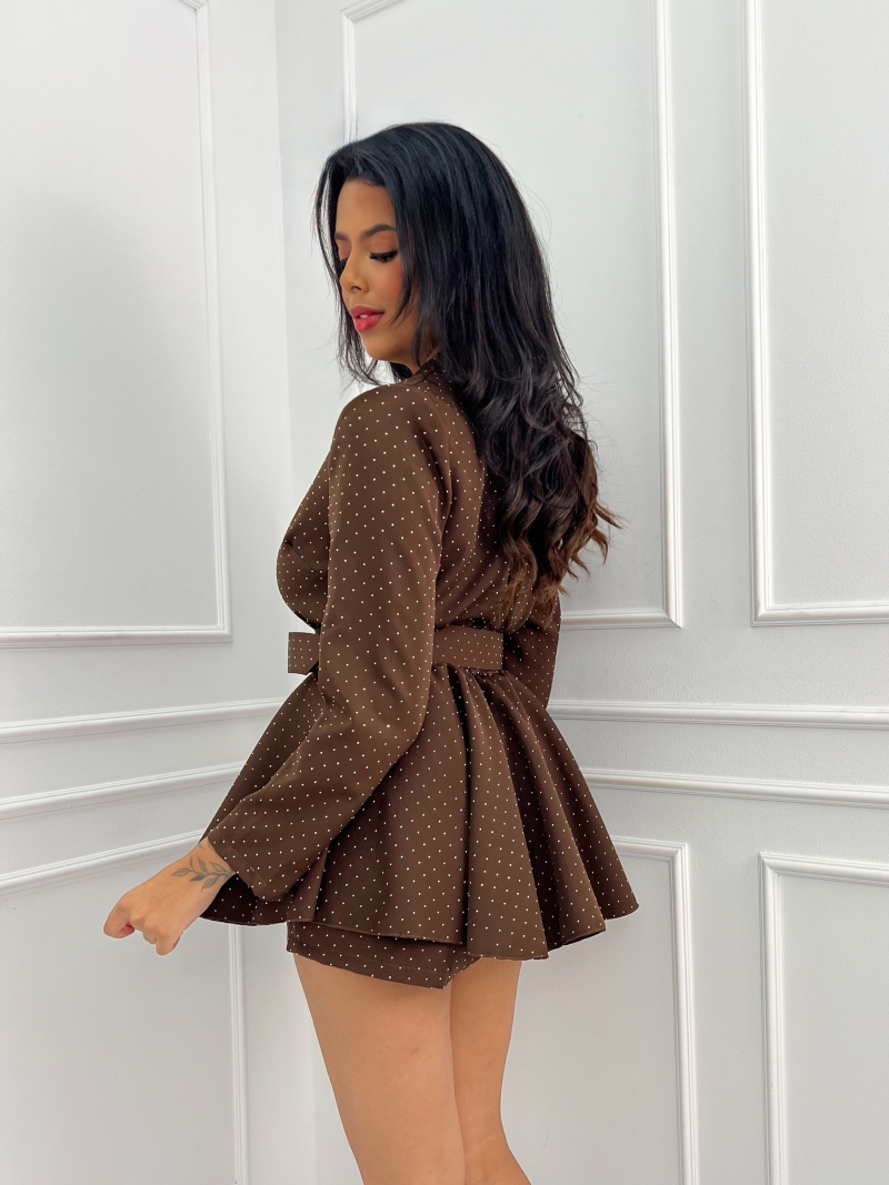 Kombinezon mini Marianna to doskonałe rozwiązanie dla każdej kobiety, która ceni sobie modę i wygodę. Dzięki jego wyjątkowemu krojowi nie musisz już wybierać między elegancją a komfortem.