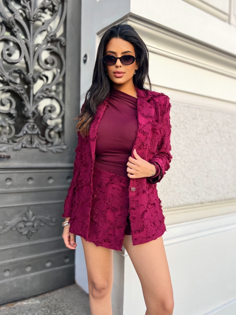 Szukasz idealnego stroju, który połączy elegancję z odrobiną luzu? Komplet marynarka i spódnico szorty z frędzlami Emeline to propozycja, która z pewnością przyciągnie Twoje zainteresowanie! Ten wyjątkowy zestaw to kwintesencja nowoczesnego stylu, który sprawdzi się zarówno na co dzień, jak i na specjalne okazje.