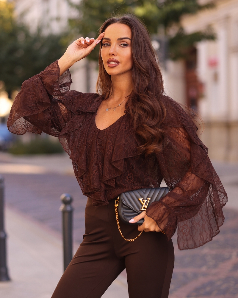Koronkowa koszula z falbanami Sheila – Elegancja w każdym detalu! Odkryj wyjątkową koronkową koszulę z falbanami Sheila, która doda szyku każdej stylizacji! Ta niezwykła koszula koronkowa łączy w sobie klasykę z nowoczesnym designem, tworząc idealny wybór na różne okazje – od romantycznych randek po eleganckie wyjścia ze znajomymi.