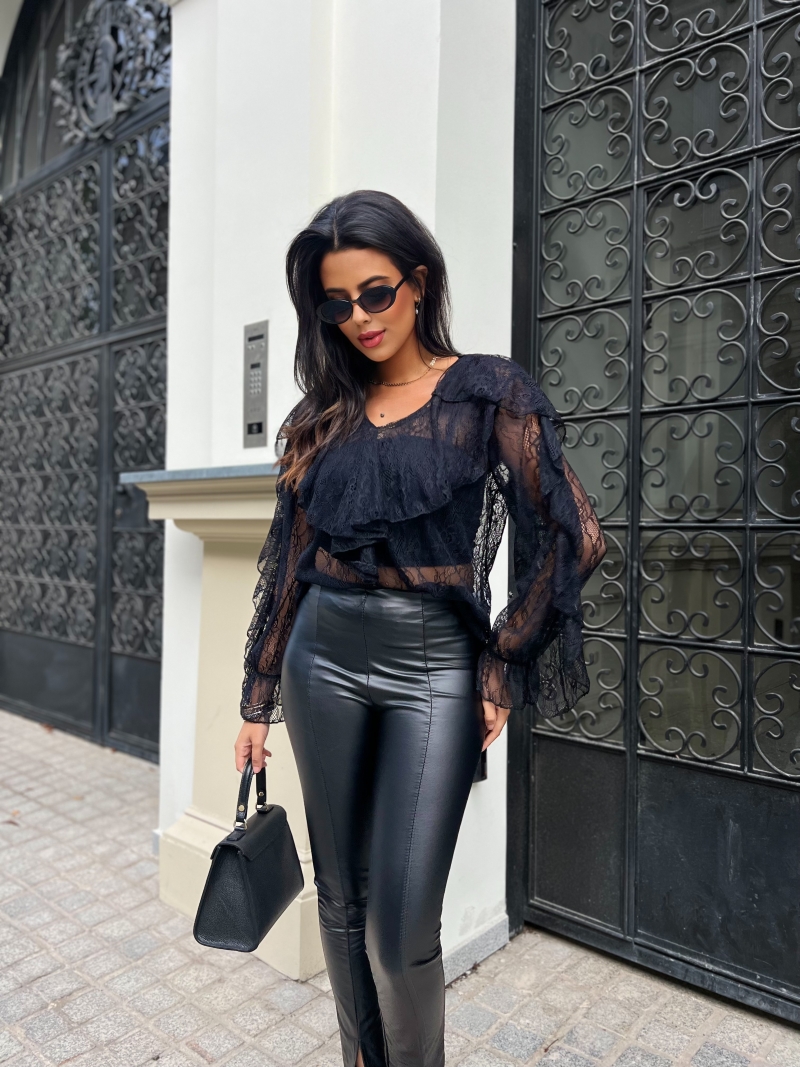 Koronkowa koszula z falbanami Sheila – Elegancja w każdym detalu! Odkryj wyjątkową koronkową koszulę z falbanami Sheila, która doda szyku każdej stylizacji! Ta niezwykła koszula koronkowa łączy w sobie klasykę z nowoczesnym designem, tworząc idealny wybór na różne okazje – od romantycznych randek po eleganckie wyjścia ze znajomymi.
