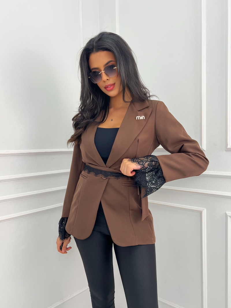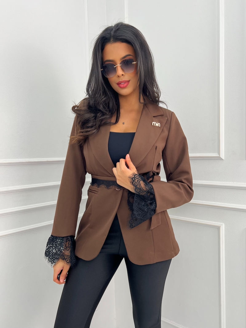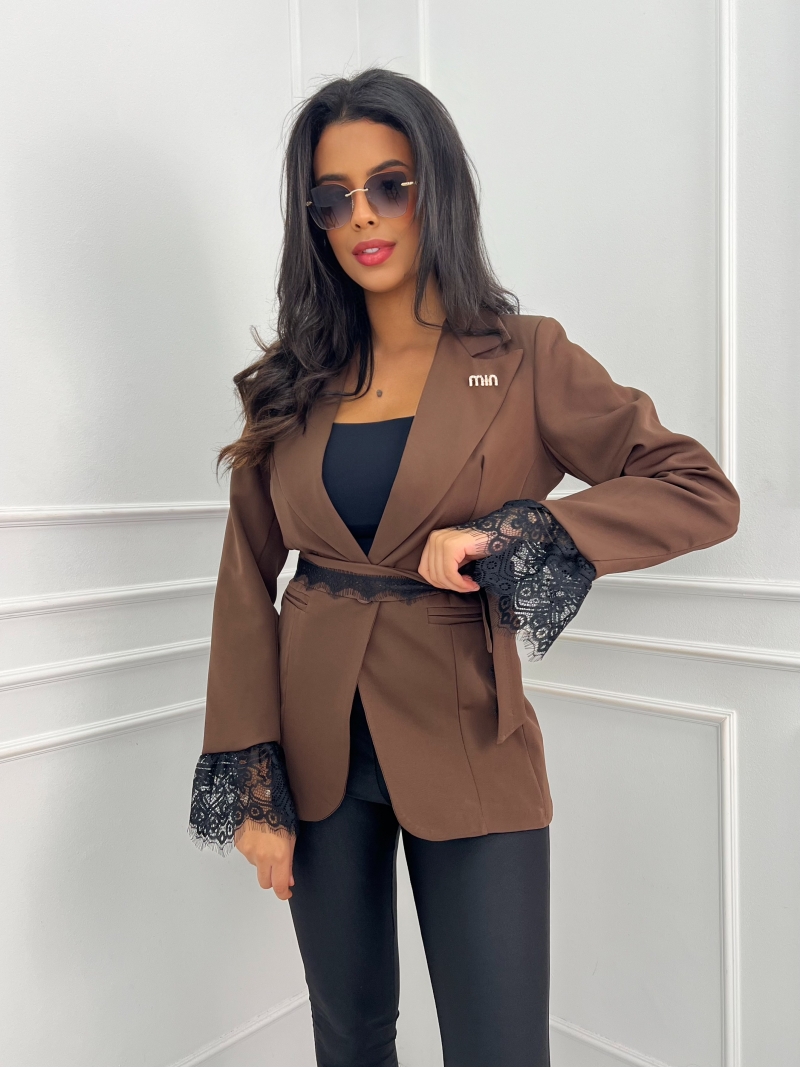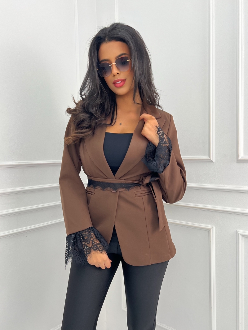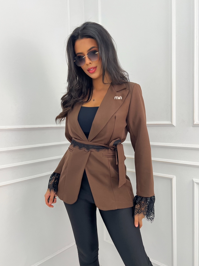 Marynarka z koronką i paskiem Iness – Elegancja w każdej sytuacji!
