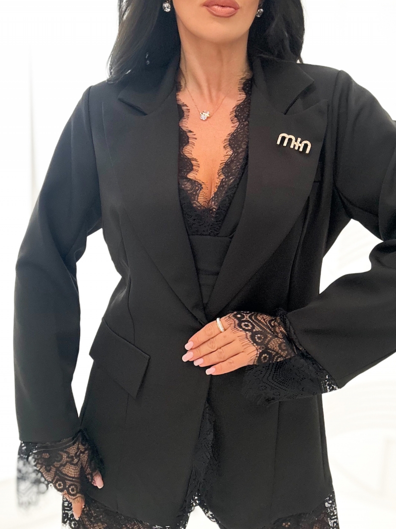 Marynarka z koronką i broszką Valencia – Elegancja w każdej sytuacji!