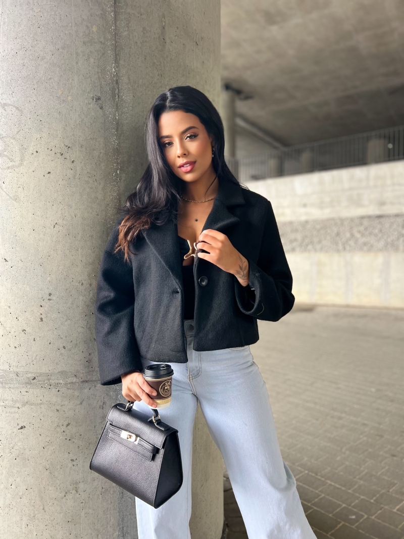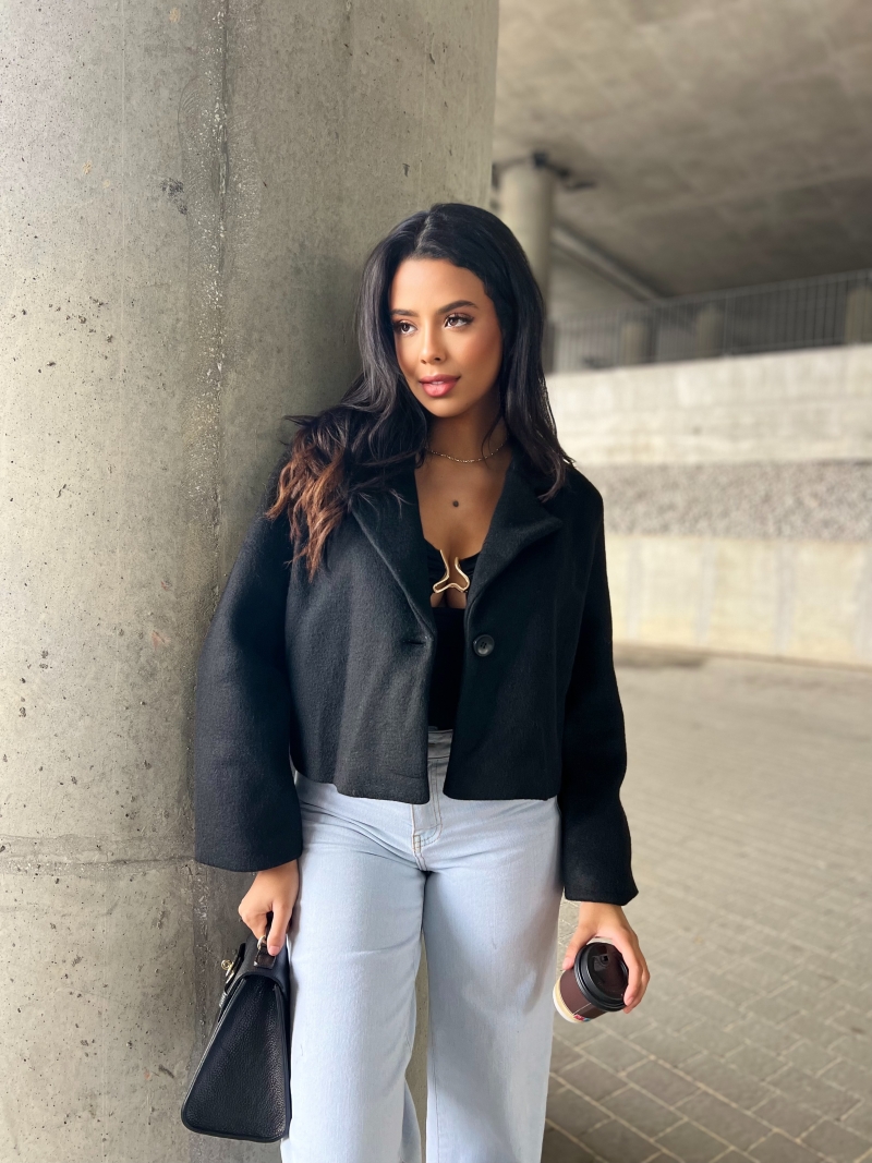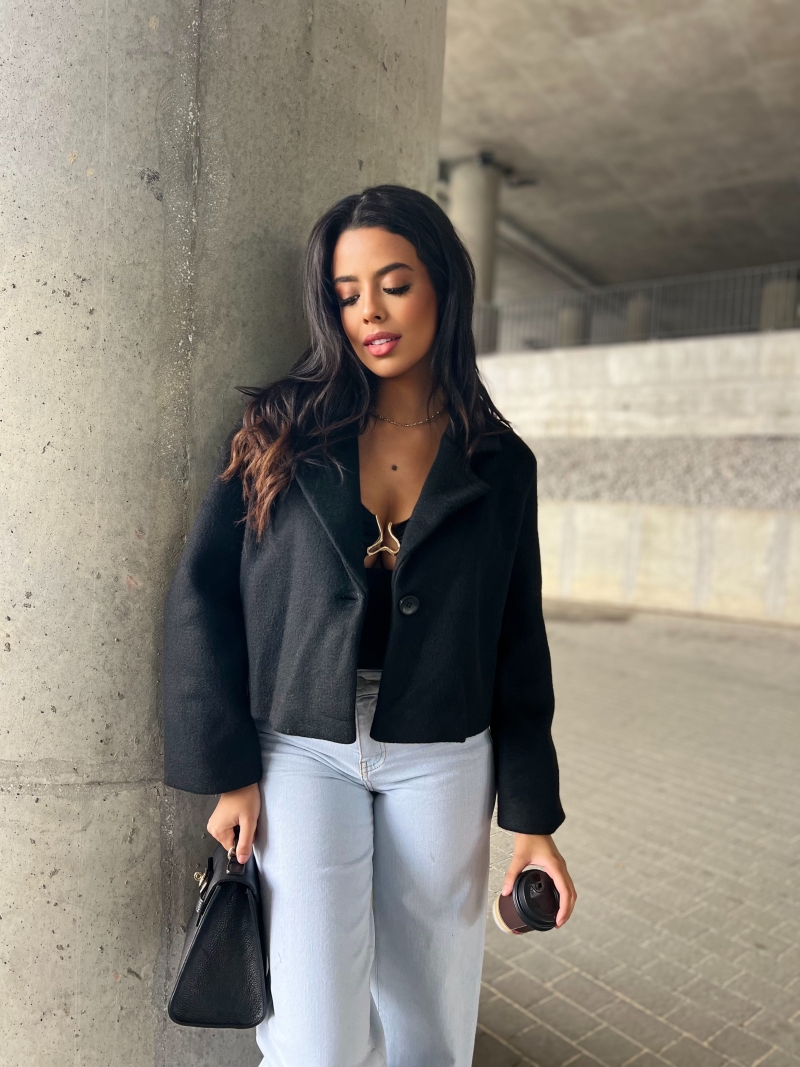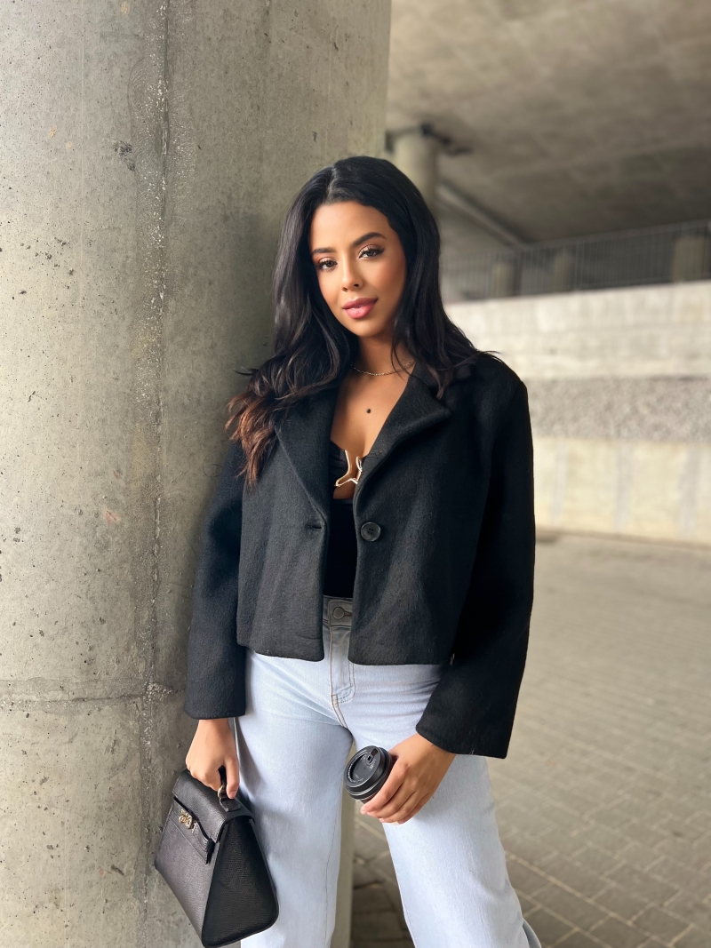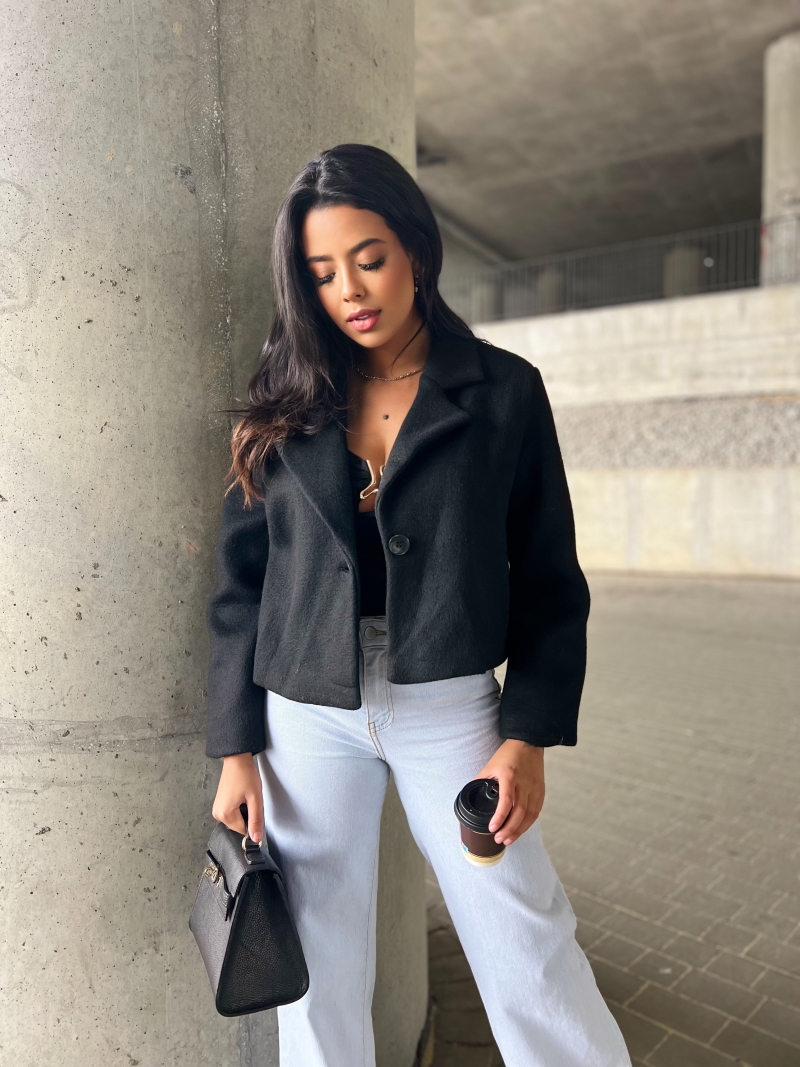 Ta stylowa kurtka łączy swobodny krój z eleganckim wykończeniem. Zapinana na guzik, z przyjemną podszewką od wewnątrz, zapewnia wygodę i ciepło, nie rezygnując przy tym z modnego wyglądu.