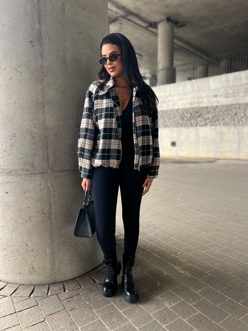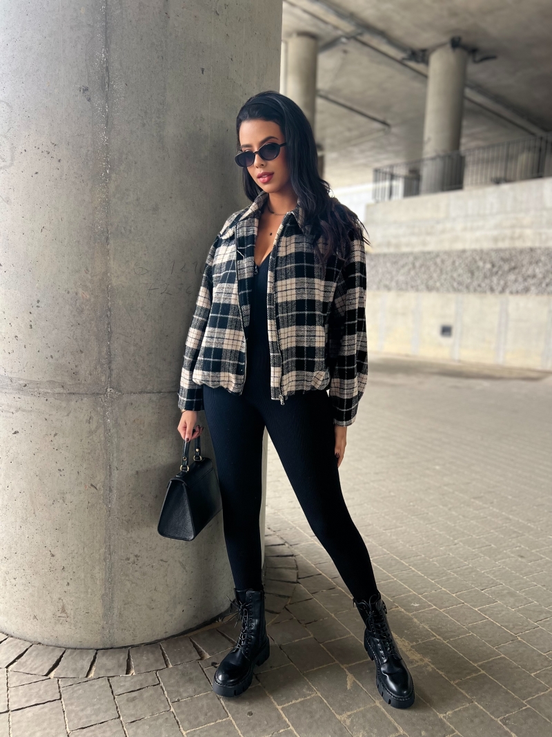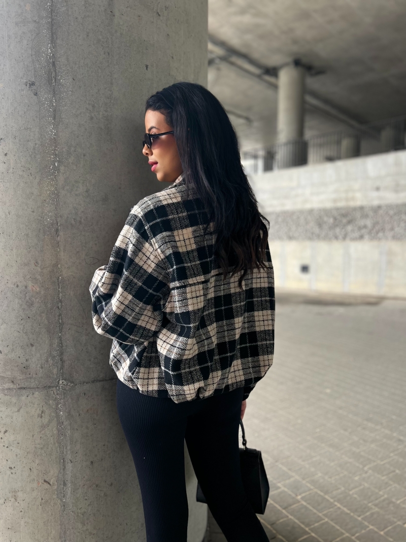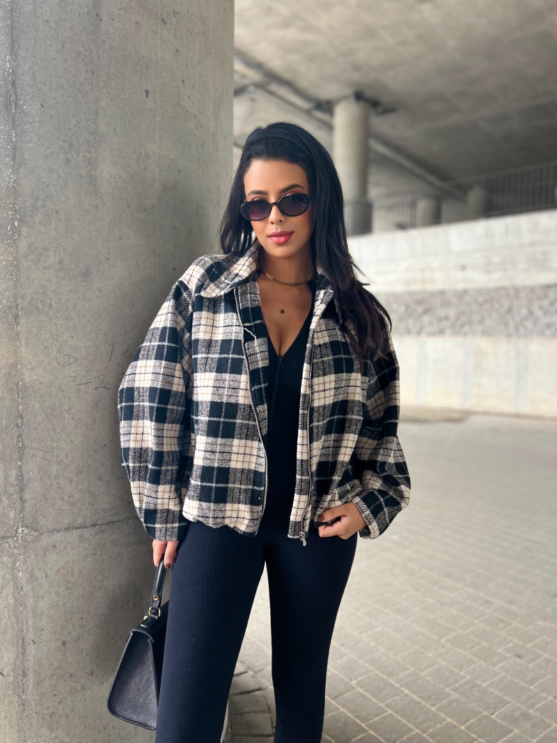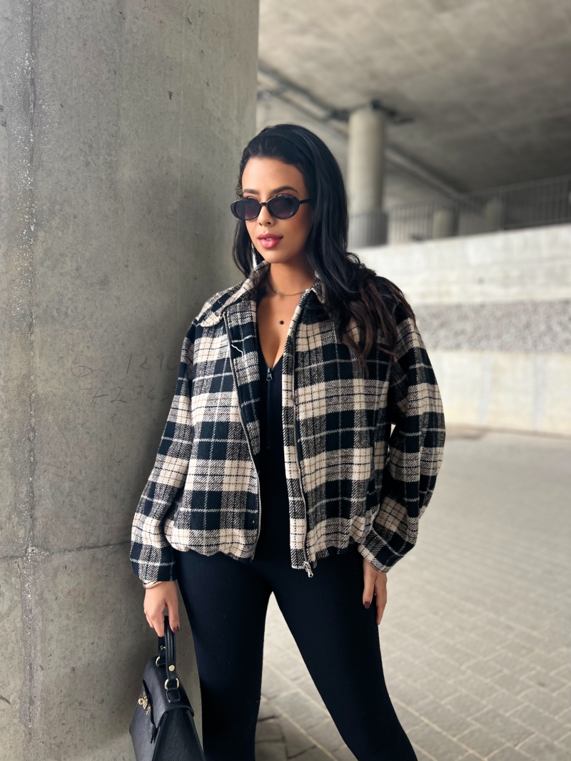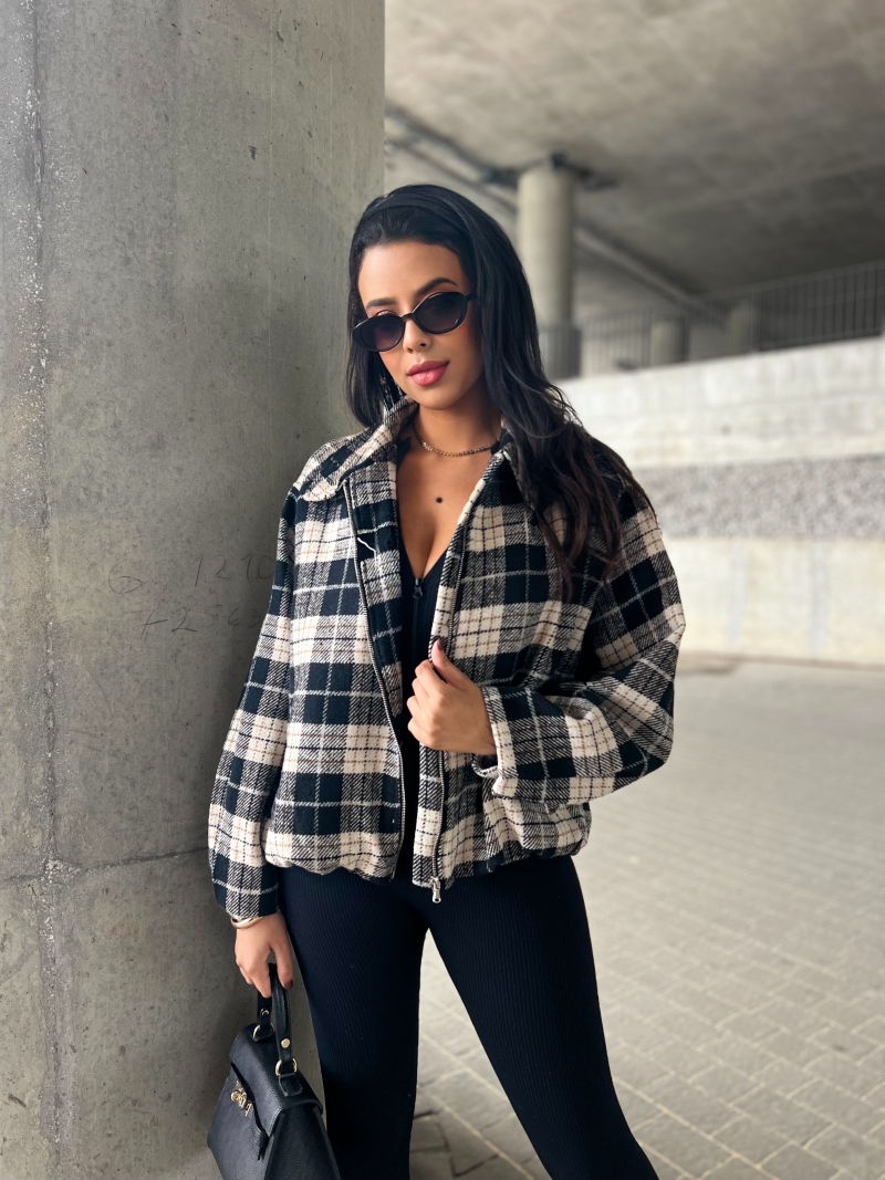 Kurtka bomberka z kołnierzykiem, w kratkę, ze ściągaczem, na zamek Bohoo – Twój nowy stylowy must-have!