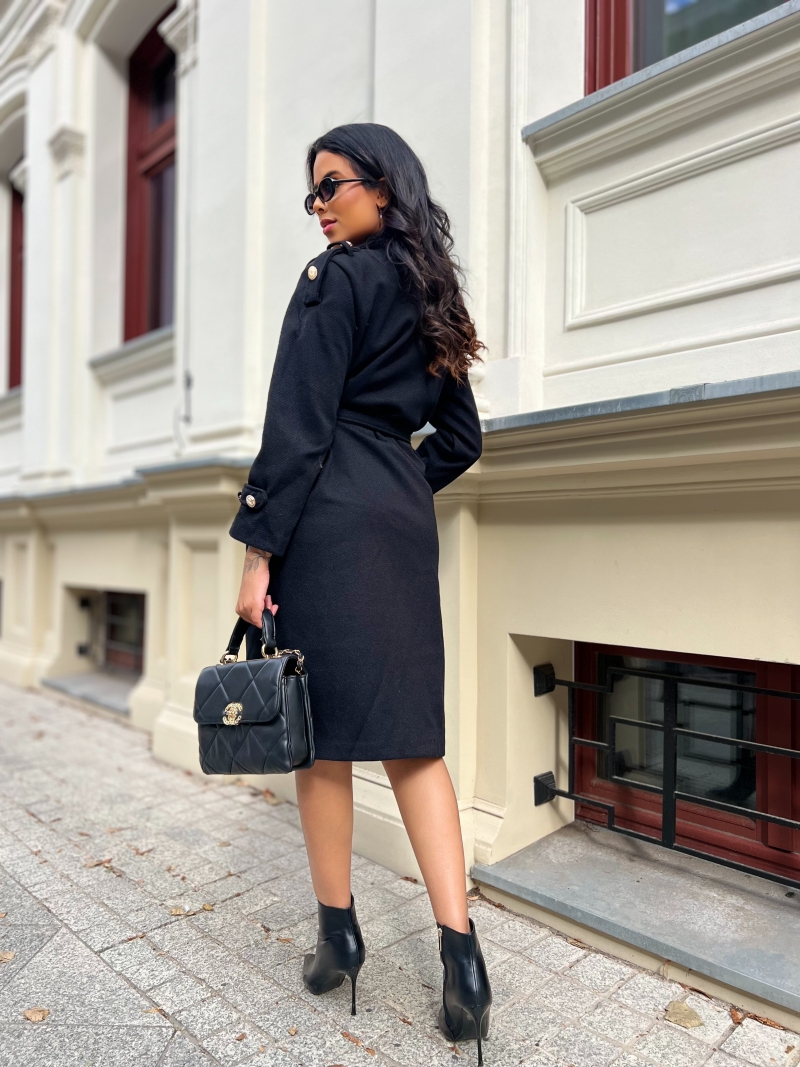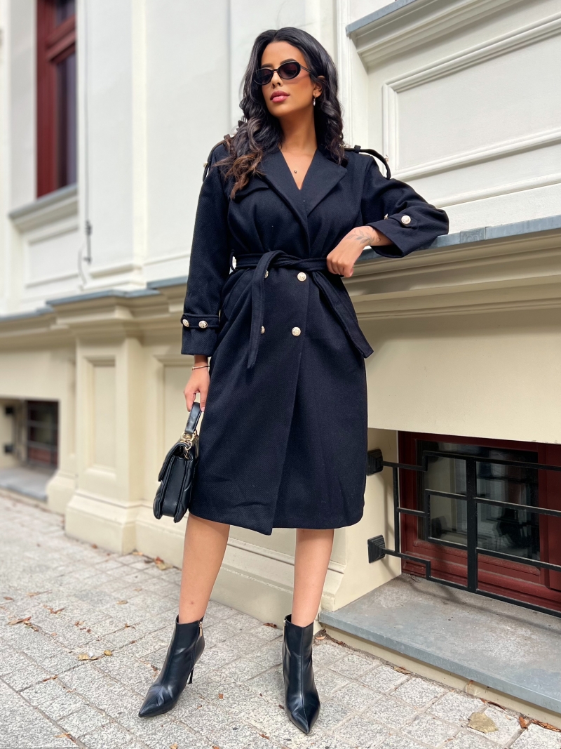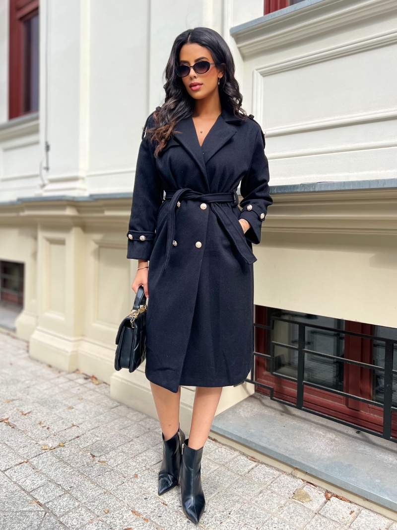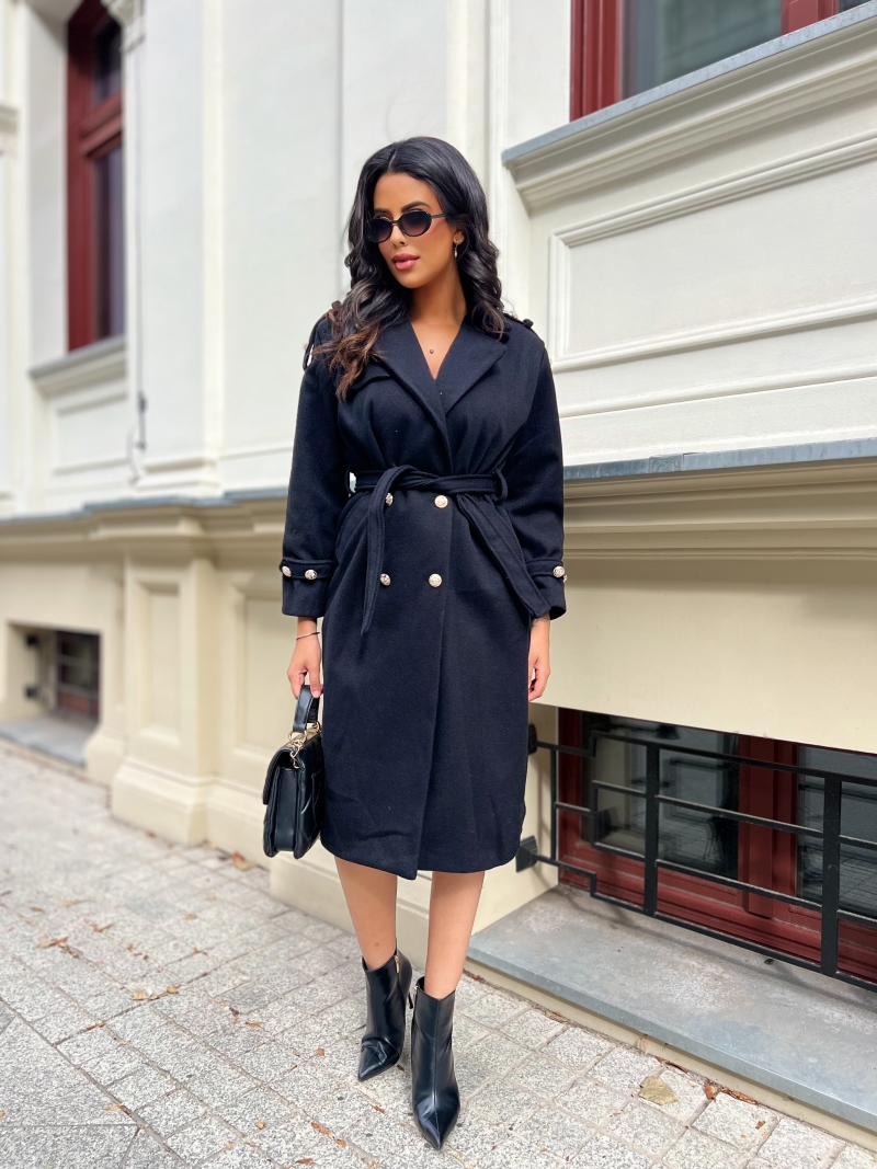 Płaszcz długi z paskiem złote guziki Sanne– Elegancja na każdą okazję!