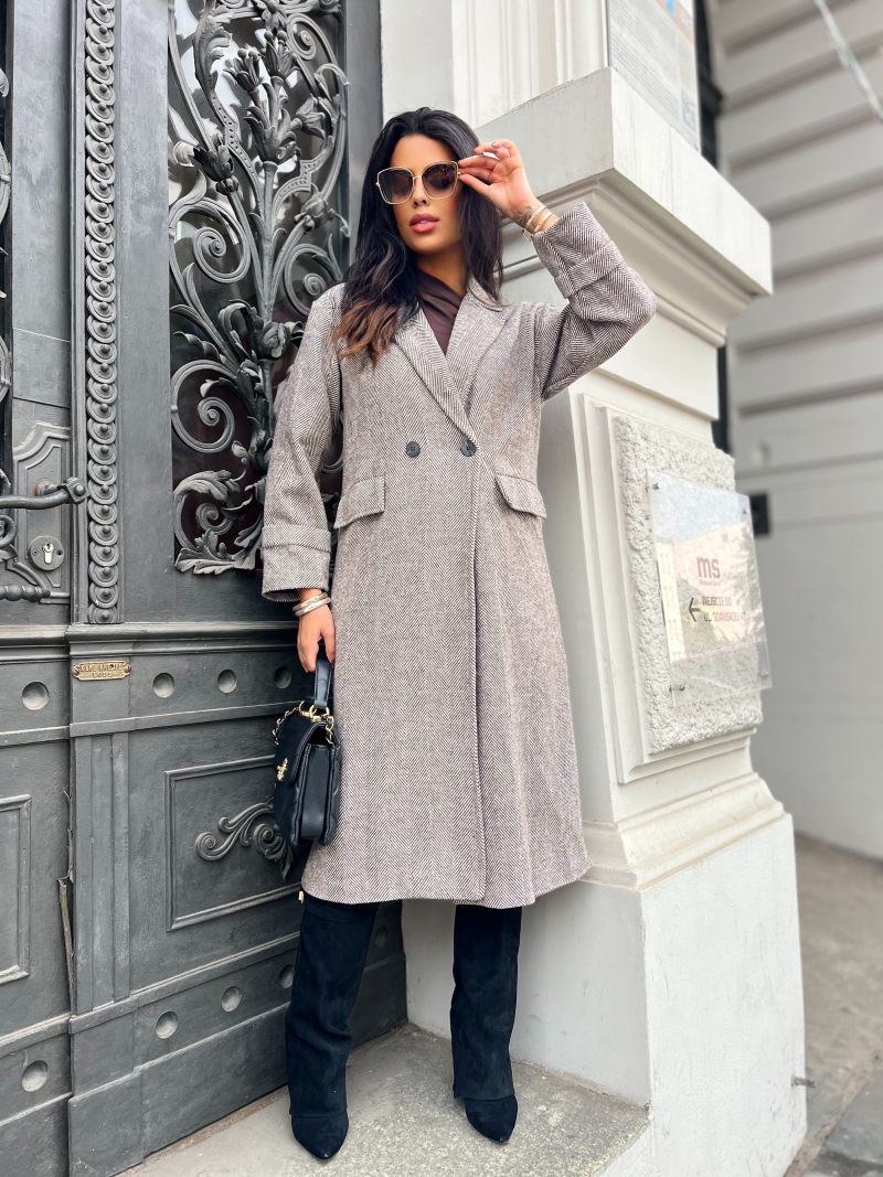 Płaszcz długi w jodełkę Tess – Klasyka, która zachwyca!