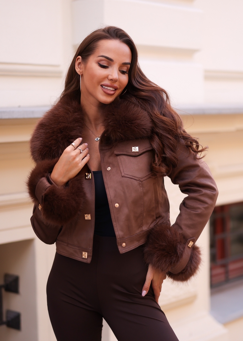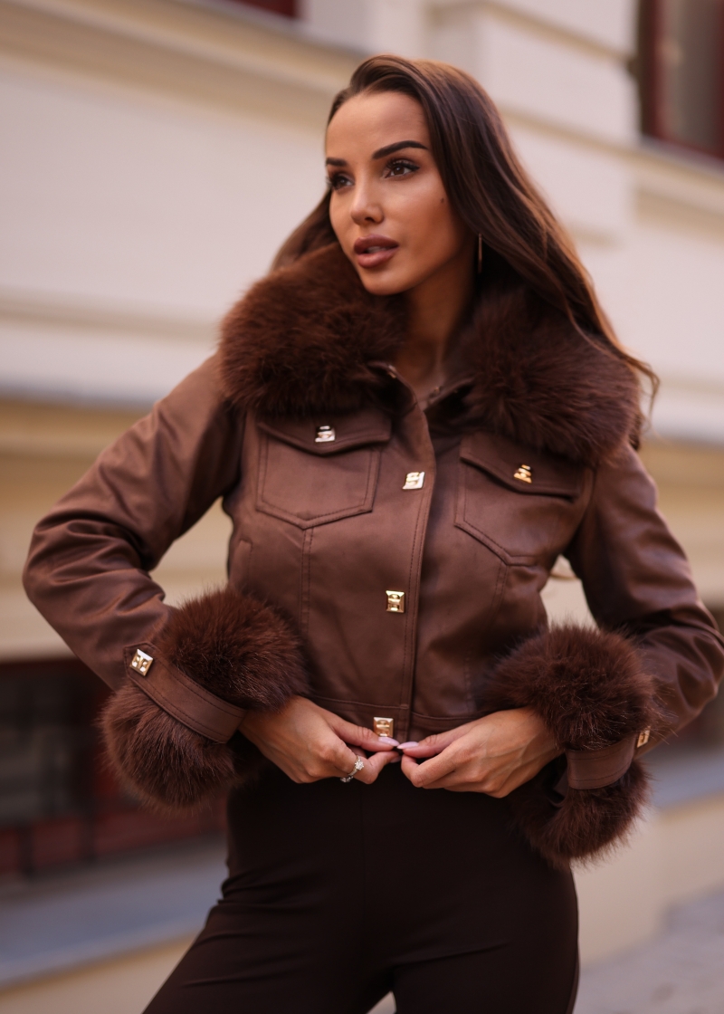 Idealny wybór dla kobiet, które pragną połączyć styl z komfortem! Kurtka ramoneska z futrem Valentin to hit tego sezonu, który z pewnością przyciągnie uwagę i doda charakteru każdej stylizacji. Ta obłędna kurtka zachwyca nie tylko wyglądem, ale także funkcjonalnością. Złote ozdobne zapięcie podkreśla elegancję, a futerko na kołnierzu oraz rękawach dodaje jej luksusowego sznytu. Wnętrze kurtki podszyte ciepłym misiem oraz wygodną podszewką na rękawach sprawia, że nawet w chłodniejsze dni poczujesz się komfortowo i stylowo.