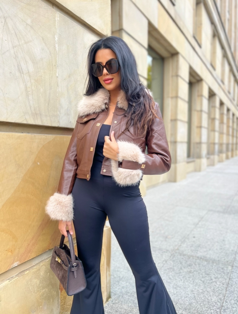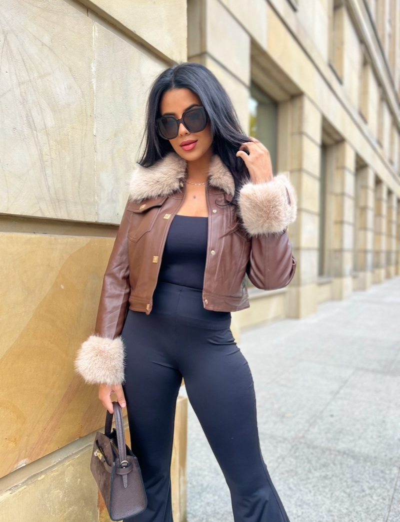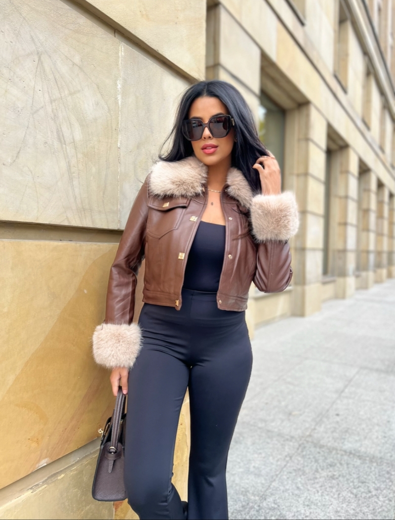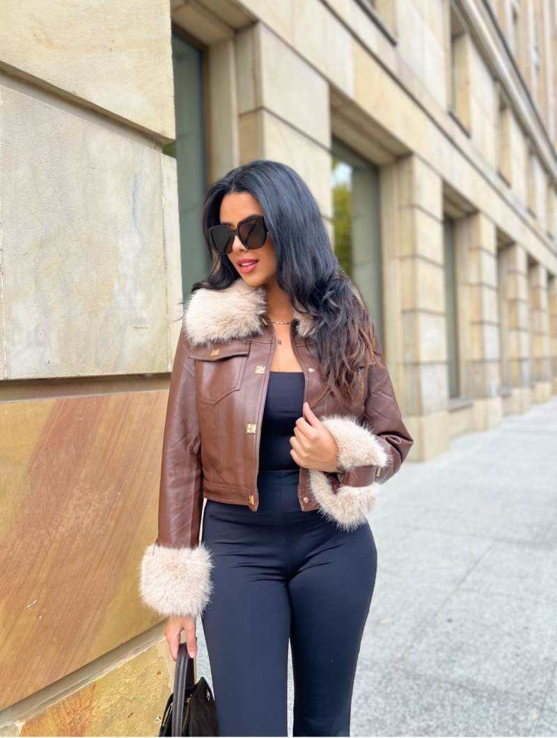 Idealny wybór dla kobiet, które pragną połączyć styl z komfortem! Kurtka ramoneska z futrem Valentin to hit tego sezonu, który z pewnością przyciągnie uwagę i doda charakteru każdej stylizacji. Ta obłędna kurtka zachwyca nie tylko wyglądem, ale także funkcjonalnością. Złote ozdobne zapięcie podkreśla elegancję, a futerko na kołnierzu oraz rękawach dodaje jej luksusowego sznytu. Wnętrze kurtki podszyte ciepłym misiem oraz wygodną podszewką na rękawach sprawia, że nawet w chłodniejsze dni poczujesz się komfortowo i stylowo.