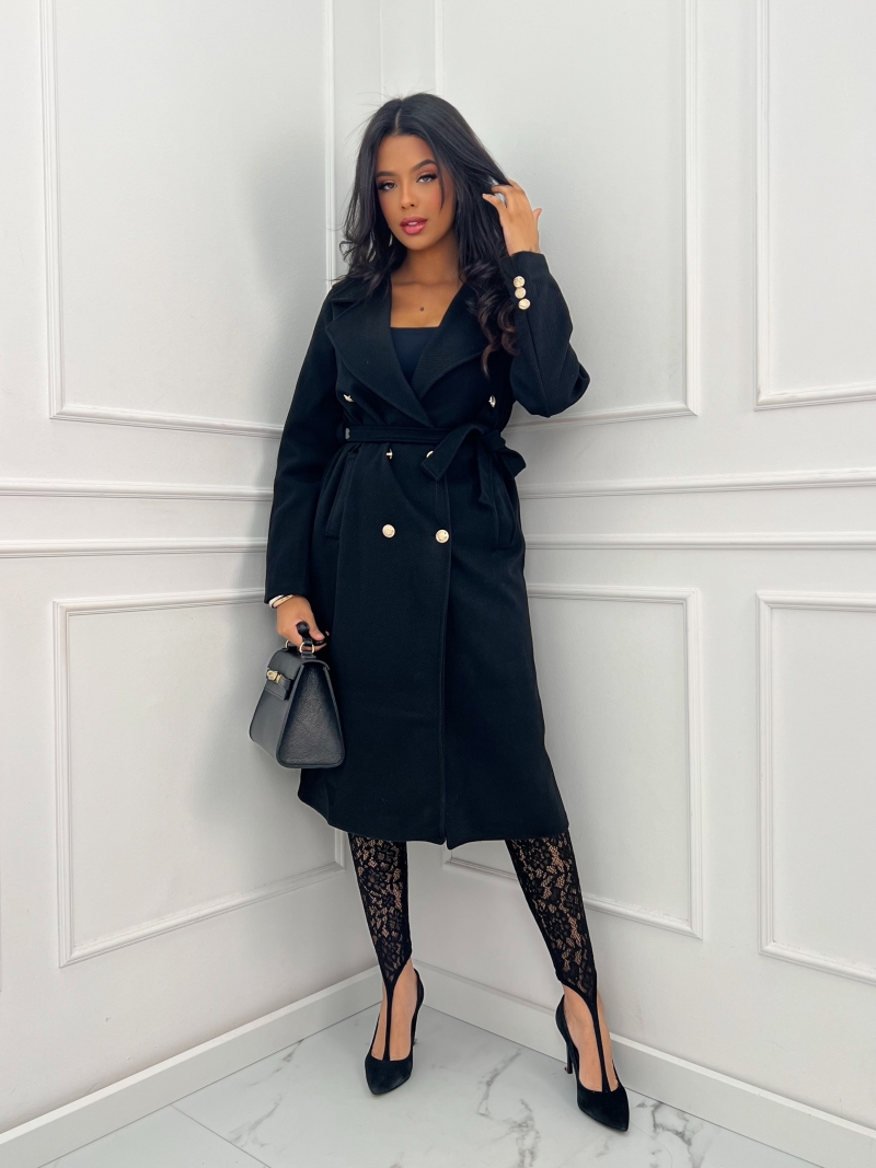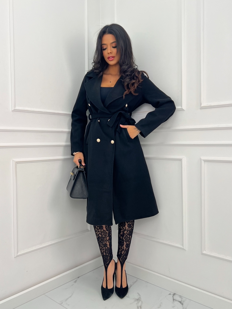 Płaszcz długi z paskiem złote guziki Kammala– Elegancja na każdą okazję!