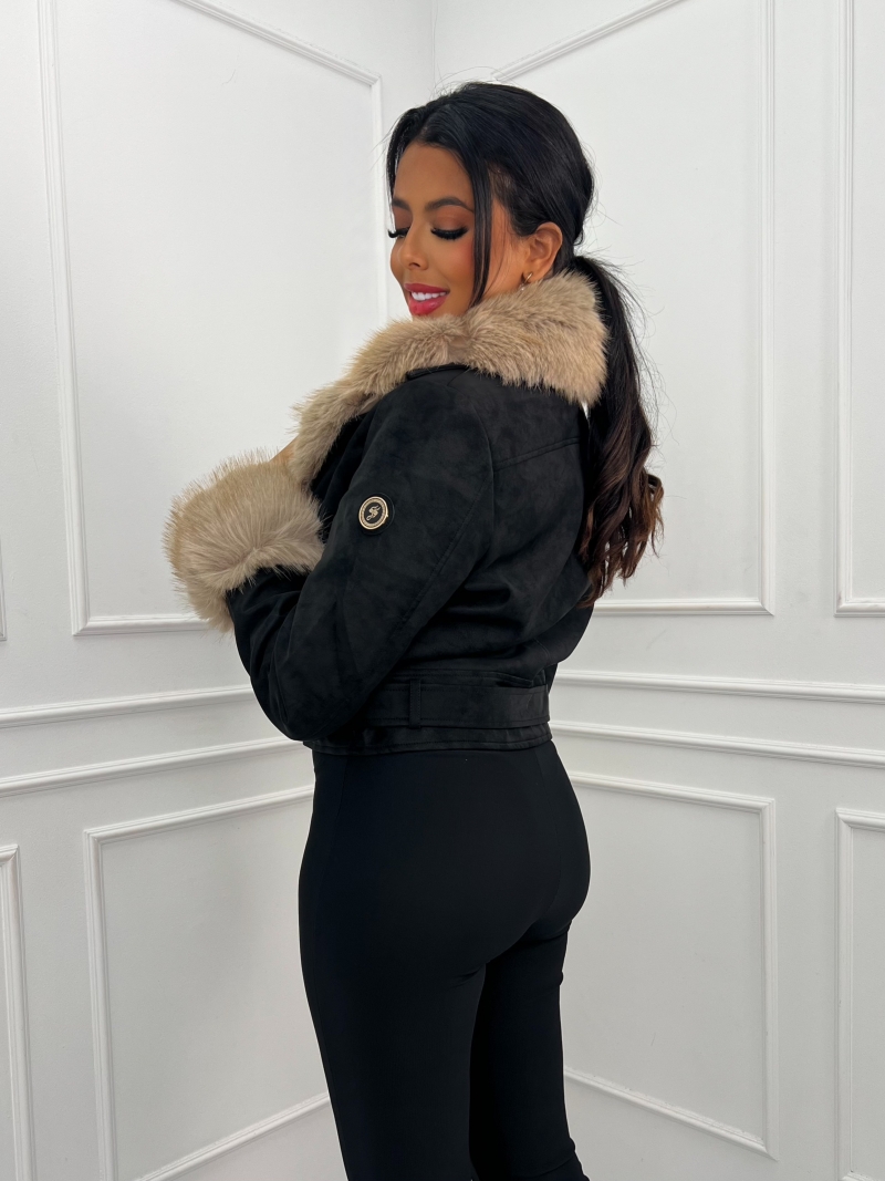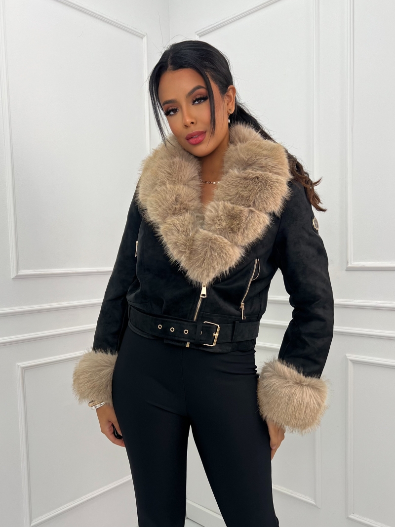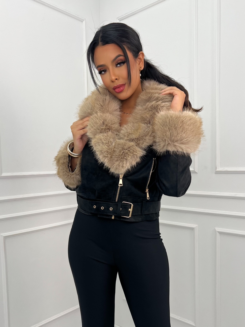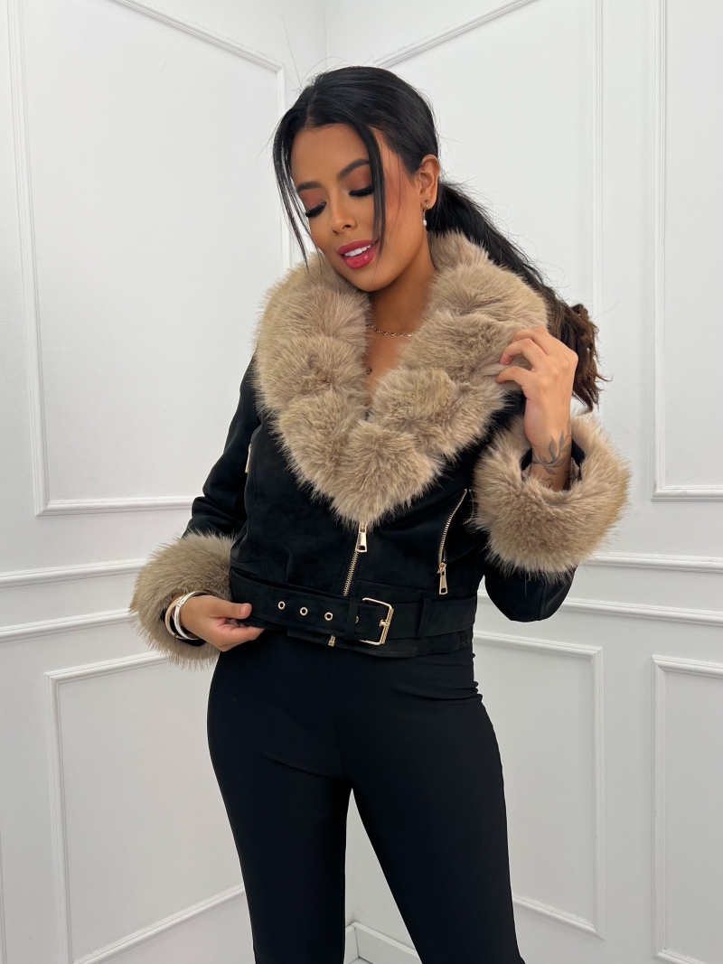 Kurtka ramoneska miękka skóra z futrem czekolada Hazel – elegancja, komfort i styl w jednym!