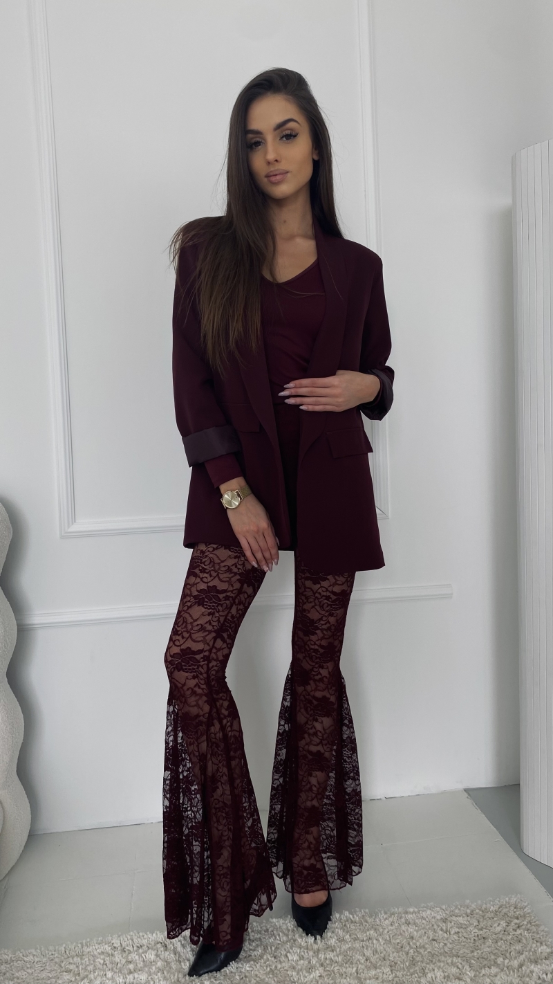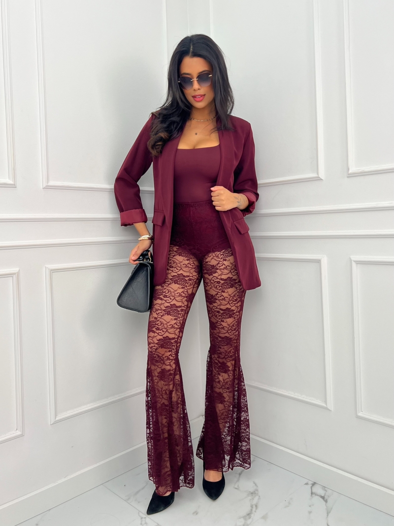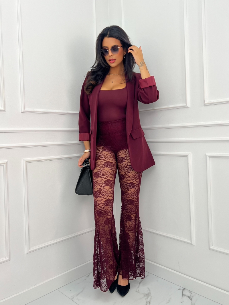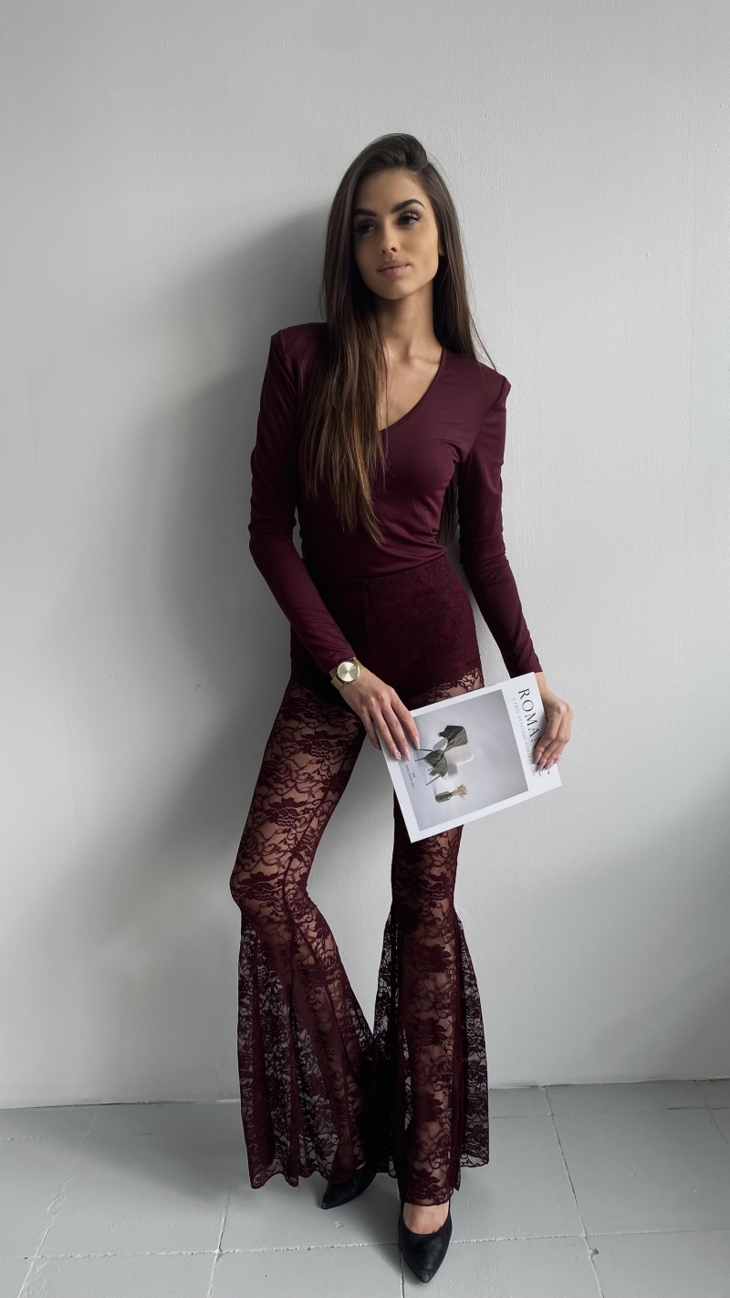 Nasze spodnie koronkowe to doskonałe połączenie elegancji i wygody, które sprawi, że poczujesz się wyjątkowo. Dzięki unikalnemu krojowi dzwonów, te spodnie idealnie podkreślają sylwetkę, a elastyczna koronka dodaje im lekkości i niepowtarzalnego charakteru.
