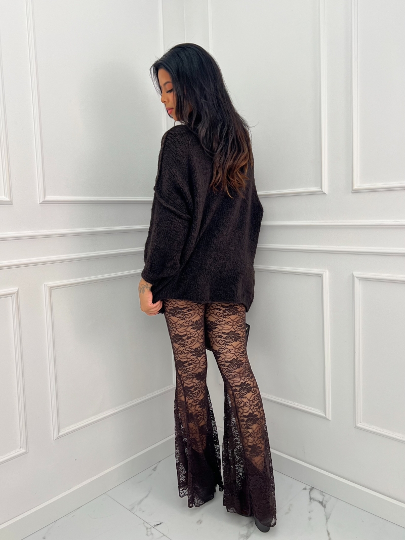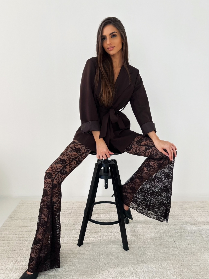 Nasze spodnie koronkowe to doskonałe połączenie elegancji i wygody, które sprawi, że poczujesz się wyjątkowo. Dzięki unikalnemu krojowi dzwonów, te spodnie idealnie podkreślają sylwetkę, a elastyczna koronka dodaje im lekkości i niepowtarzalnego charakteru.