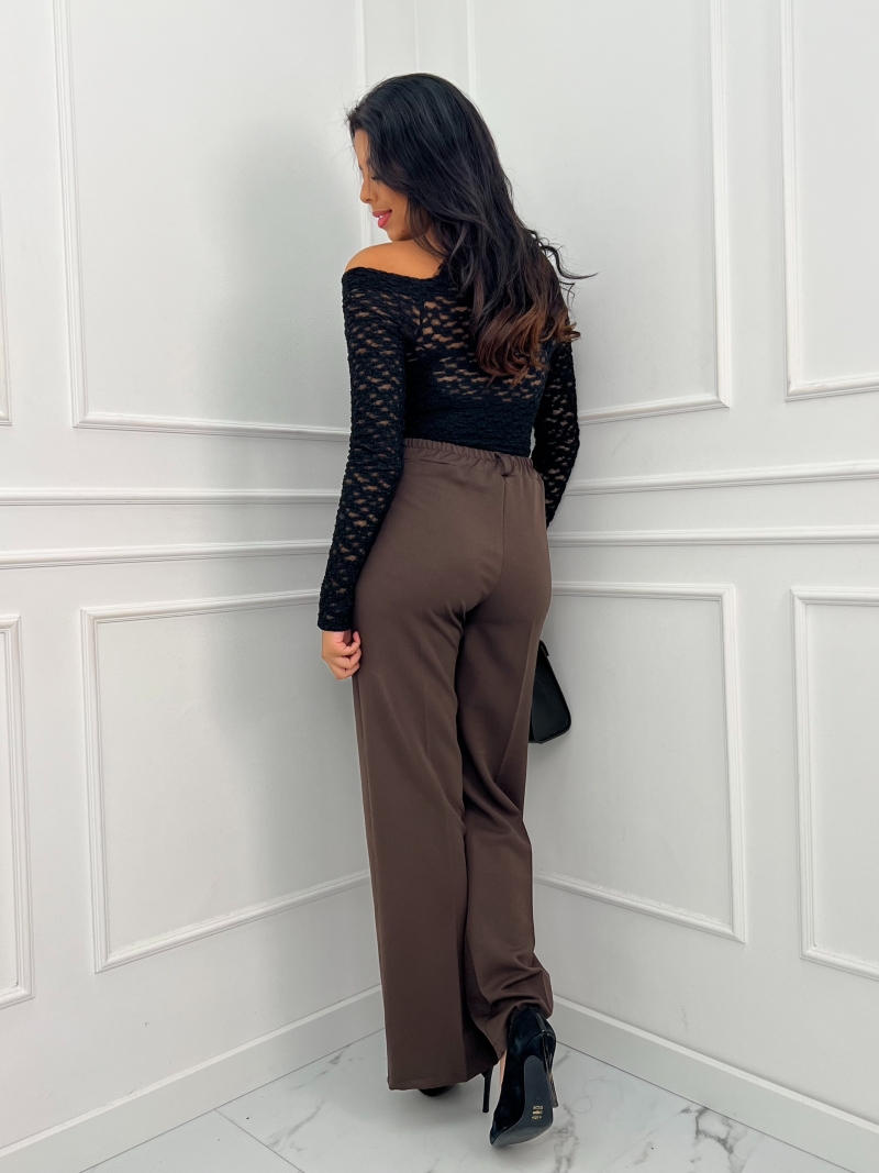 Odkryj wyjątkowe spodnie wide leg w kant, które staną się nieodłącznym elementem Twojej garderoby! Te materiałowe spodnie łączą w sobie styl i komfort, oferując doskonałe rozwiązanie na specjalne okazje oraz codzienne wyjścia. Dzięki gumce na plecach i eleganckiemu zapięciu na guzik, zyskujesz nie tylko świetny wygląd, ale także wygodę noszenia przez cały dzień.