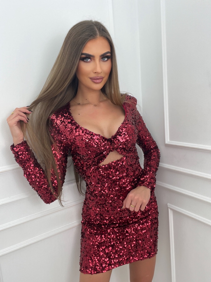 Sukienka cekinowa mini z wycięciem Yuka – Blask i Elegancja na Wyciągnięcie Ręki!
