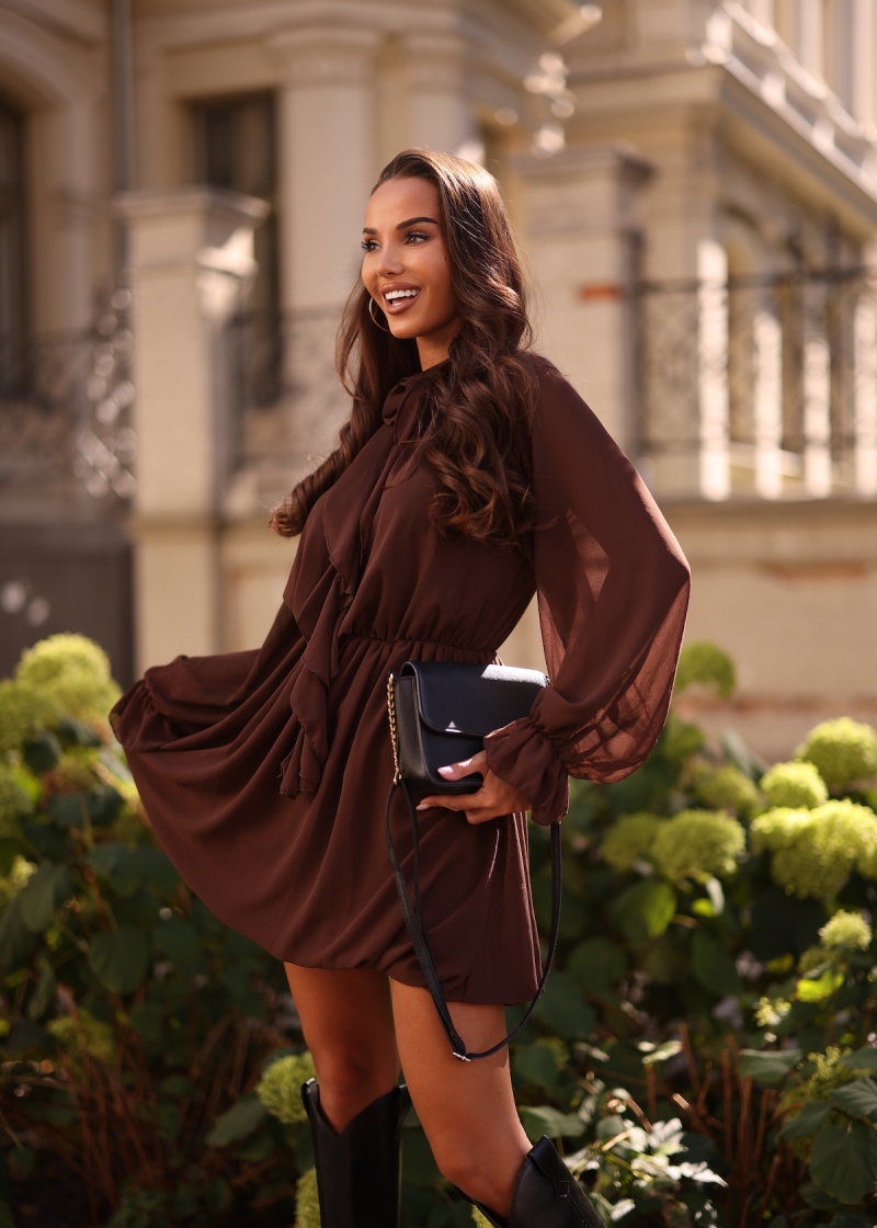 Odkryj magię jesieni z naszą wyjątkową sukienką Loven! Ta lekka sukienka mini to doskonałe połączenie stylu i komfortu, które sprawi, że poczujesz się pewnie i kobieco, niezależnie od okazji.