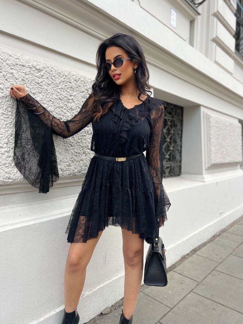 Odkryj magię wyjątkowych chwil z naszą sukienką koronkową Linzi, która łączy w sobie subtelność i zmysłowość. Dzięki pięknemu dekoltowi w serek oraz długim rękawom zdobionym falbanami, ta sukienka jest idealna na każdą okazję – od romantycznej kolacji po eleganckie przyjęcia.