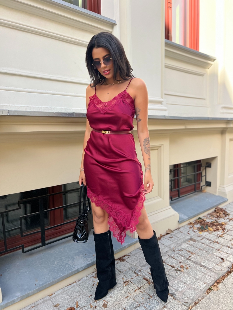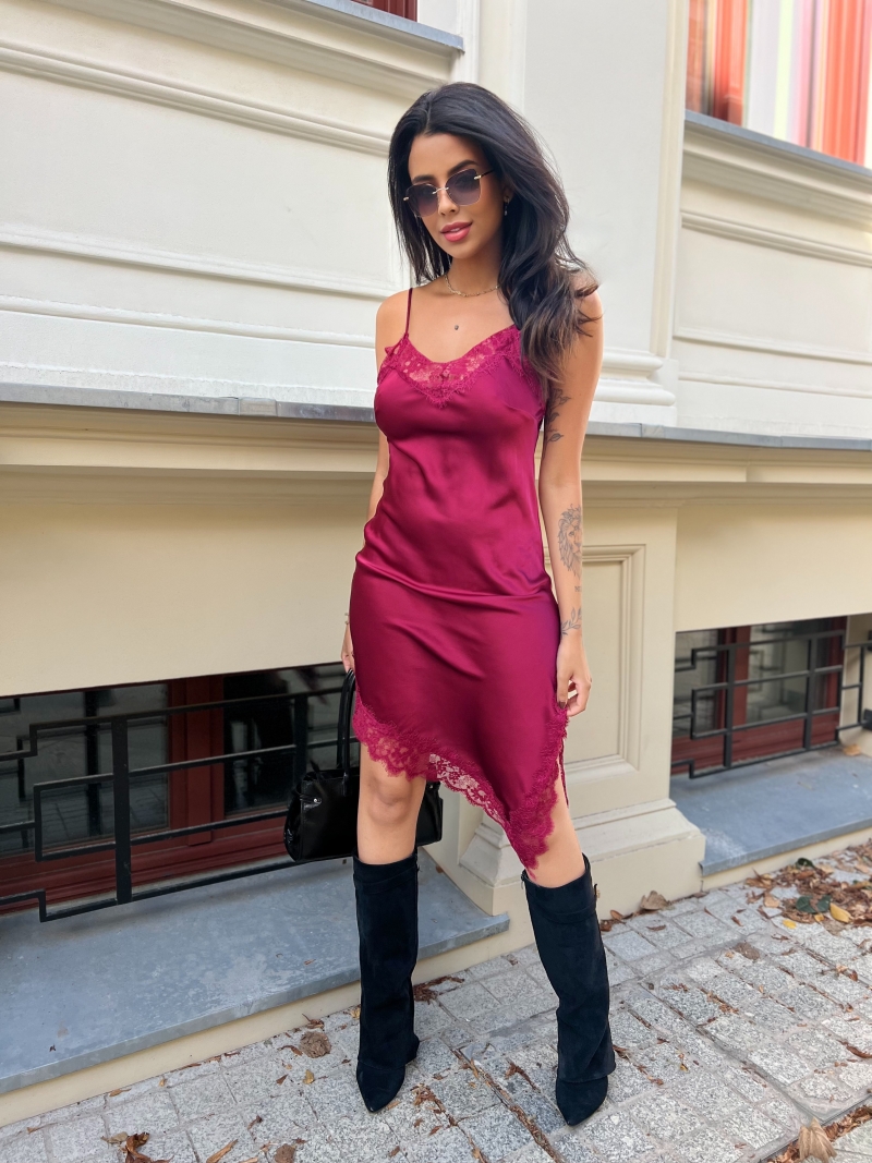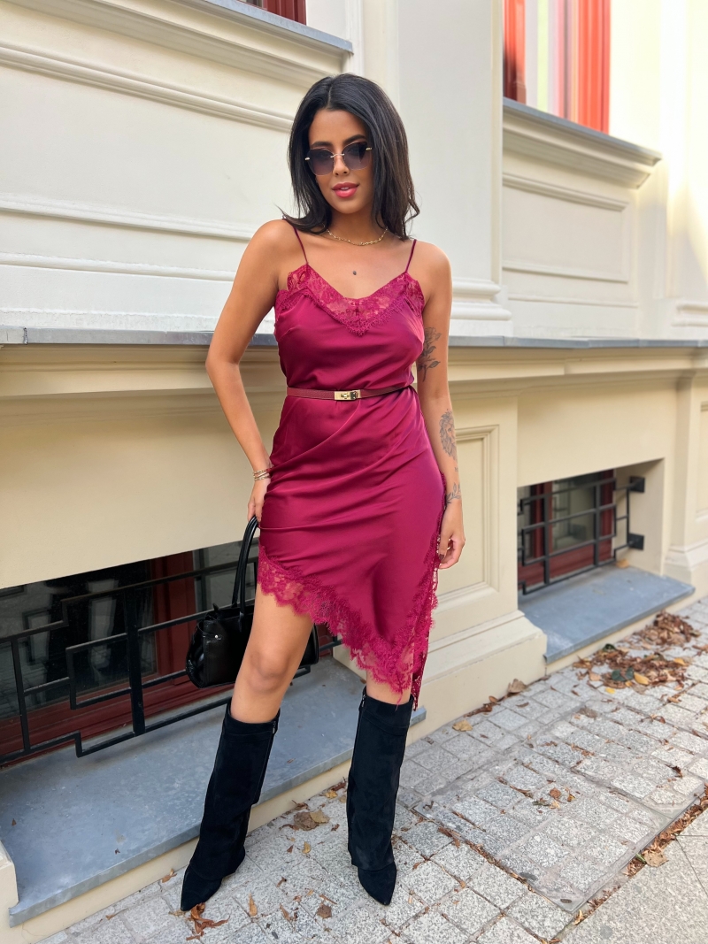 Sukienka satynowa z koronką Pelle – Elegancja i styl w każdym calu!