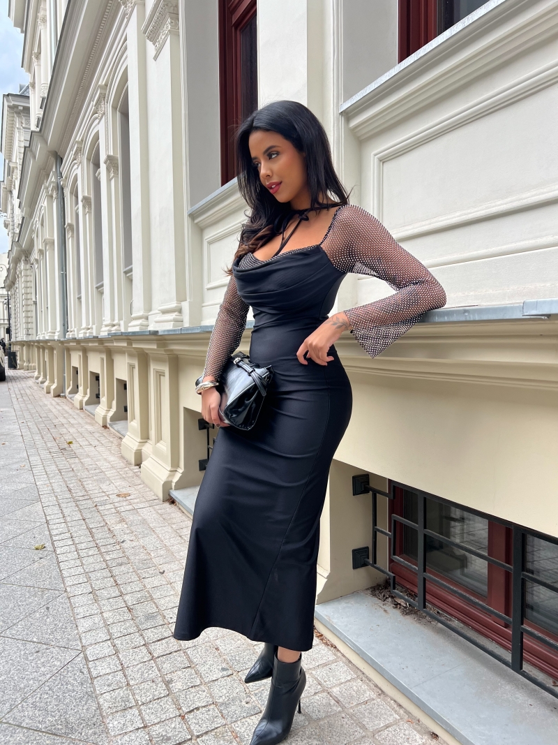 Ta sukienka maxi to idealny wybór na różnorodne okazje – od romantycznych kolacji po eleganckie przyjęcia. Dzięki uniwersalnemu czarnemu kolorowi łatwo ją wystylizujesz na wiele sposobów. Dodaj ulubione dodatki i stwórz niepowtarzalny look, który zachwyci wszystkich!