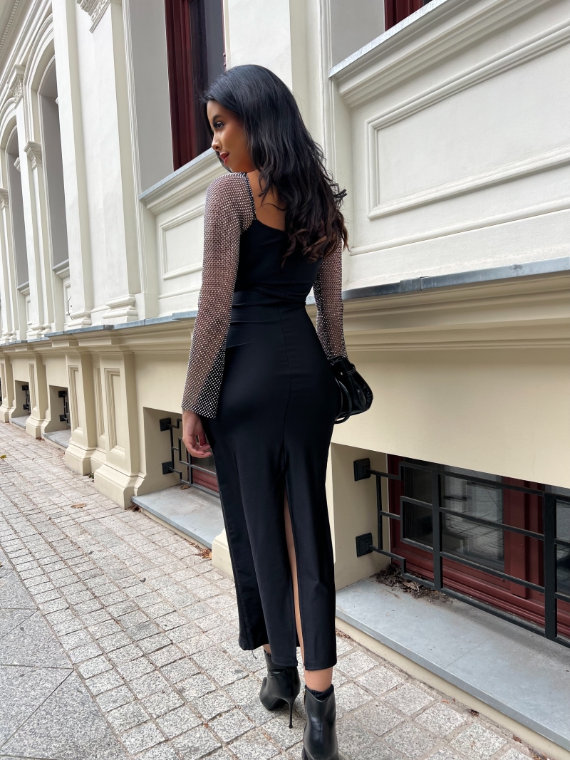 Szukasz idealnej sukienki, która podkreśli Twoją urodę i doda wyjątkowego blasku każdej okazji? Oto sukienka maxi z ozdobnym rękawem czarna Mayestic! Ta wyjątkowa kreacja łączy w sobie elegancję i komfort, sprawiając, że poczujesz się pewnie i stylowo.