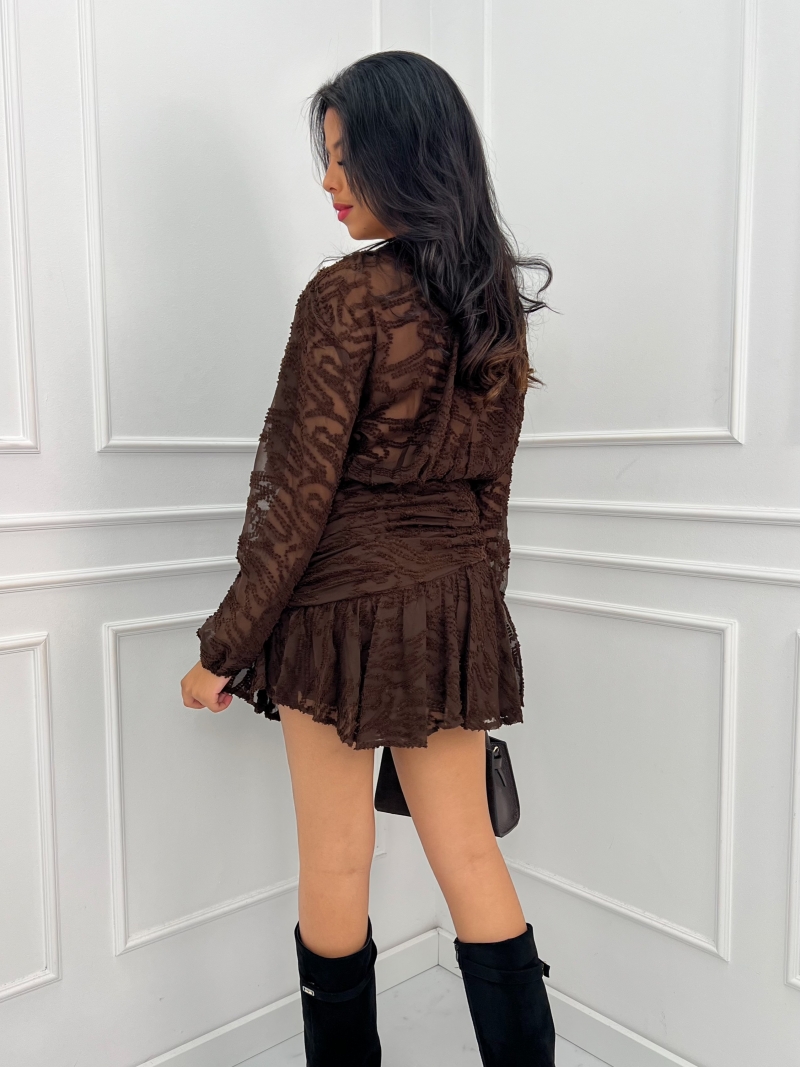 Odkryj magię elegancji i kobiecości z naszą sukienką mini czekolada Simone! Ta wyjątkowa sukienka to idealny wybór na każdą okazję, od romantycznej kolacji po spotkanie z przyjaciółmi. Dzięki swojemu rozkloszowanemu krojowi, sukienka nie tylko podkreśla sylwetkę, ale również zapewnia komfort i swobodę ruchów.