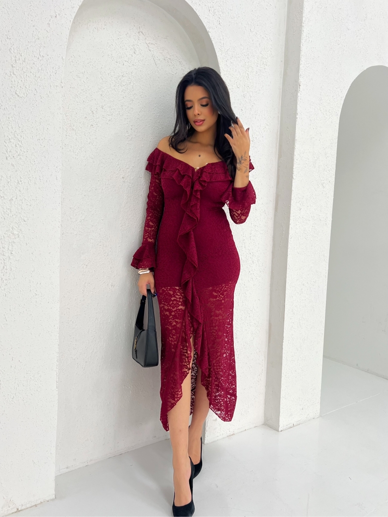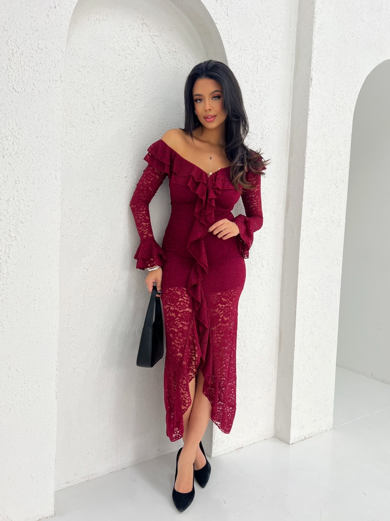 Sukienka maxi koronkowa z falbanami Lusi – Zjawiskowa elegancja na każdą okazję!